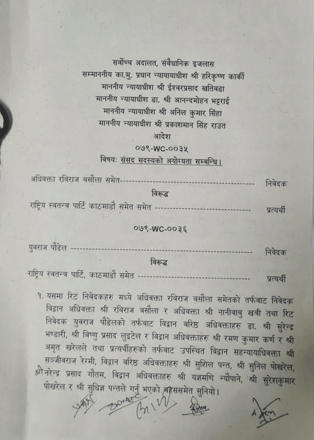 र यो मुद्दामा कुनै पनि पक्षले सुनुवाइ स्थगित गर्न नपाउने आदेश सर्वोच्चले दिएको छ।