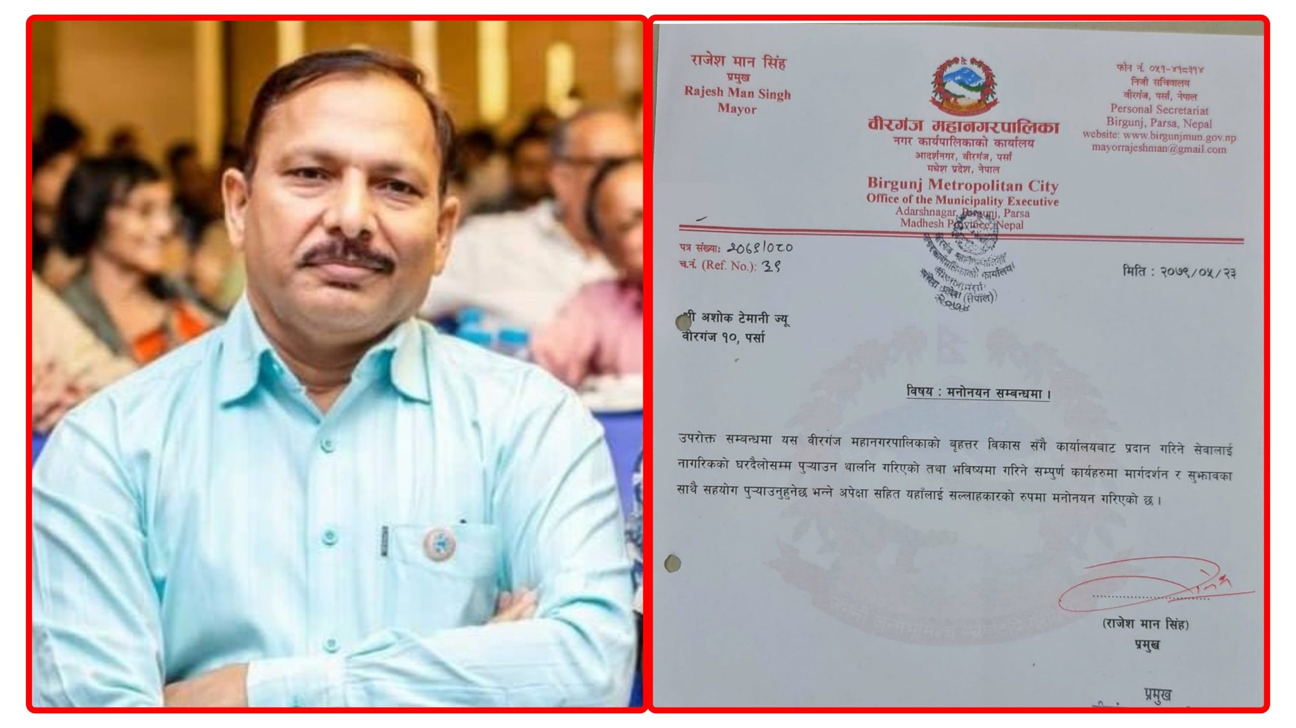 वीरगञ्ज । वीरगञ्ज महानगरपालिकाले उद्योगी अशोक टेमानीलाई सल्लाहकारमा मनोनयन गरेको छ ।
