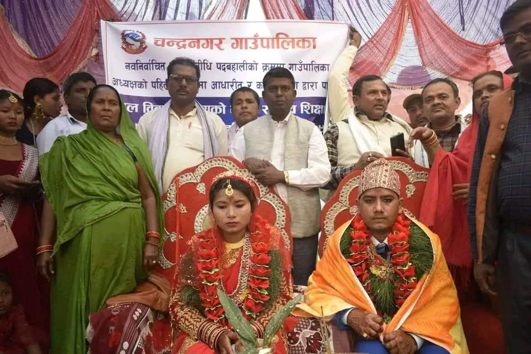 शुक्रबार चन्द्रनगर गाउँपालिका– २ निवासी रेणुकुमारी सिंहलाई विवाह समारोहकै बीच गाउँपालिका अध्यक्ष राजकुमार महतोले सो रकमबराबरको चेक हस्तान्तरण गरे। चेक हस्तान्तरण गर्दै उनले गाउँपालिकाभित्रका सम्पूर्ण युवतीलाई २० वर्ष पूरा गरेर मात्र विवाह गर्न अनुरोध गरे।