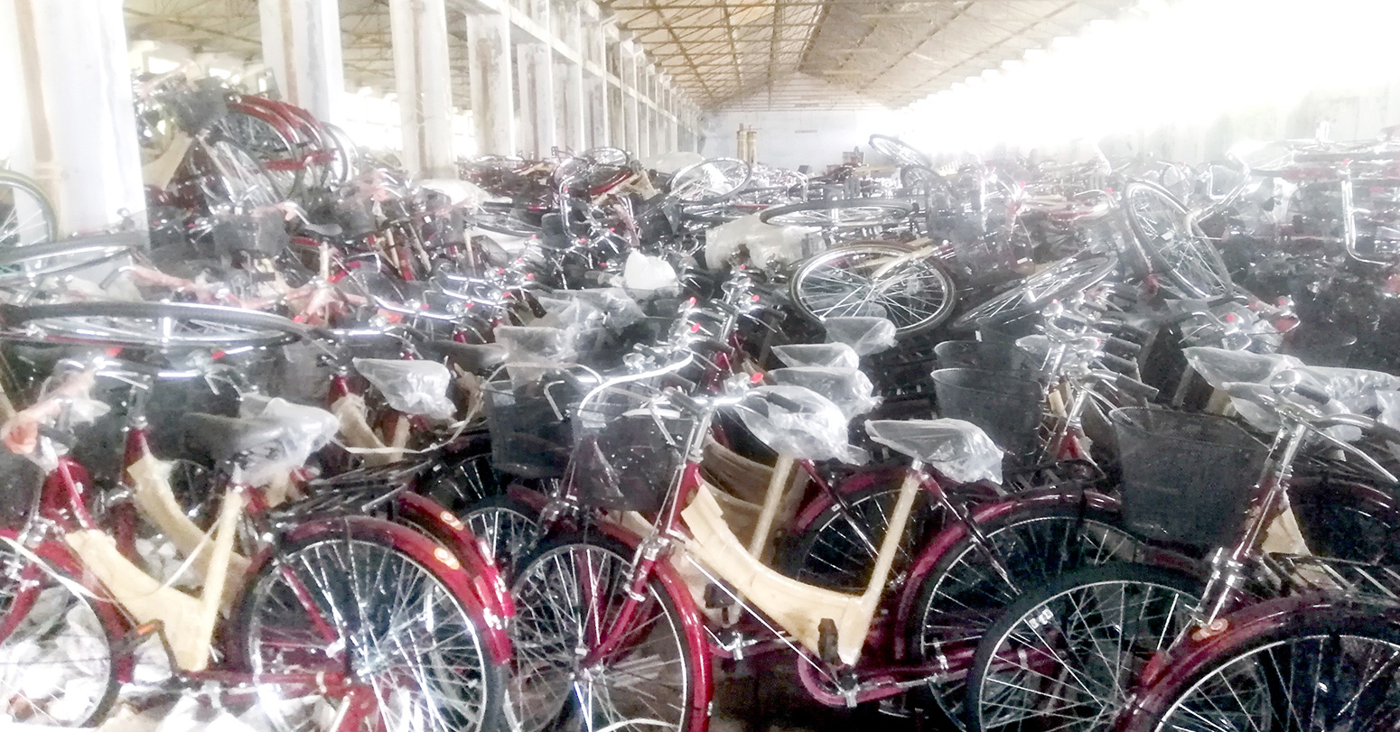 काठमाडौंको पुतलीसडकस्थित स्यान्यो इन्टरनेशनल प्रा.लि.मार्फत किनिएकामध्ये आधा साइकल करिब दुई वर्षदेखि जनकपुरमा रहेको मधेश भवनको गोदाममा थन्किएका छन् ।