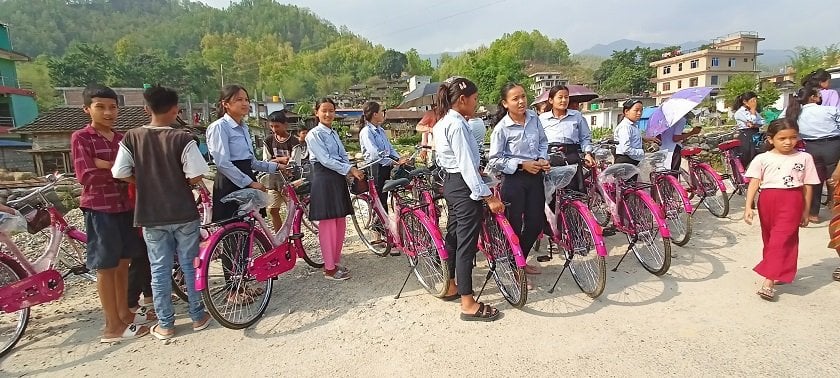 उनले भने, “गाउँपालिकाले शनिबार साइकल दिएको भए पनि छात्रा पदैल नै विद्यालयमा आइरहेका छन्, केही दिन सिक्न समय लाग्छ । आफैँ चलाउन सक्ने भएपछि साइकलमै विद्यालय आउजाउ गर्दछन् भन्ने हाम्रो विश्वास छ ।” आर्थिक वर्ष २०७९÷८० को नीति तथा कार्यक्रमअनुसार बजेट व्यवस्था गरेर कक्षा ११ मा अध्ययनरत छात्रालाई साइकल वितरण गरिएको गाउँपालिकाका अध्यक्ष विर्मश मोक्तानले बताए । उनका अनुसार स्थानीय सरकारले सडक नपुगेको ठाउँमा कच्ची बाटो भने पनि खनेको छ । त्यसलाई क्रमशः स्तरोन्नति गर्दै लगिने छ ।