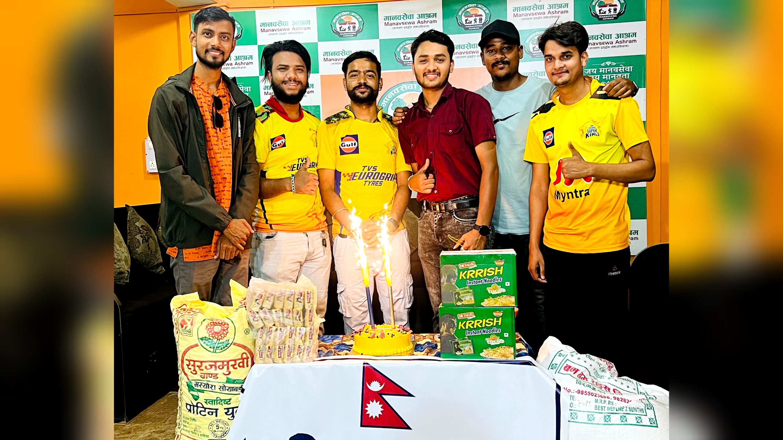 एम एस धाेनी फ्यान क्लब वीरगन्जमा आबद्ध क्रिकेट प्रेमी युवाहरुले मंगलबार साँझ वीरगन्जस्थित मानव सेवा आश्रममा पुगेर चाउचाउ, बिस्कुट, भुजा , साेयाबिन लगायतका खाद्यान्न सहयाेग गरेका हुन् ।