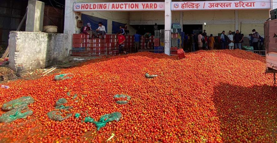 उत्पादित तरकारीको लागत मूल्यसमेत नउठेको किसानको गुनासो छ। टमाटर सडकमा फालेपछि हटाउन जेसीबी प्रयोग गर्नुपरेको छ।