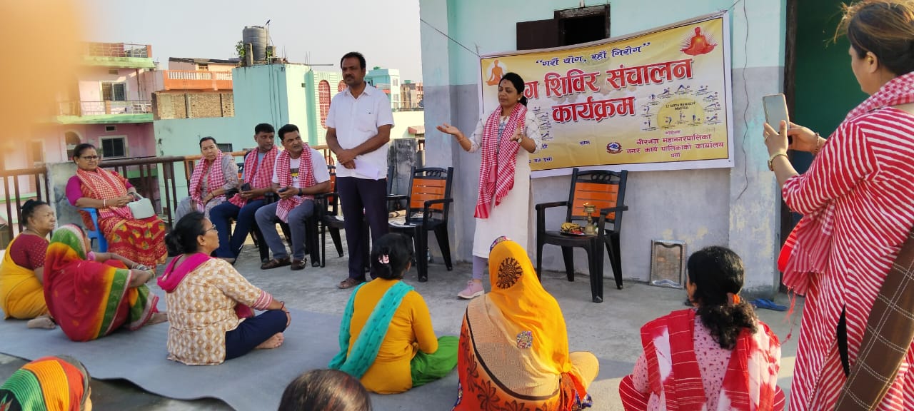 उद्घाटन कार्यक्रममा महानगरपालिकाको सामाजिक शाखाका खोभारी यादव, आमा समुहकी अघ्यक्ष जुली श्रेष्ठ, वडा सदस्यहरू संजु दाहाल, मंजु परियार, रूस्तम अली लगायतको सहभागीता थियो । यस्तै वीरगञ्जको वडा नम्वर १५ भिस्वामा जारी ७ दिने योग शिविर आज सम्पन्न भएको छ ।