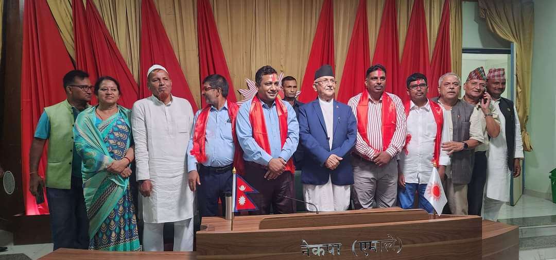 बुधबार एमाले केन्द्रीय कार्यालयमा आयाेजित कार्यक्रममा एमाले अध्यक्ष केपी शर्मा ओलीकाे हातबाट टिका र खादा लगाएर उनिहरु एमालेमा प्रवेश गरेकाे एमालेका वीरगन्ज महान कमिटी सचिव सुन्दर कुर्मीले जानकारी दिए ।