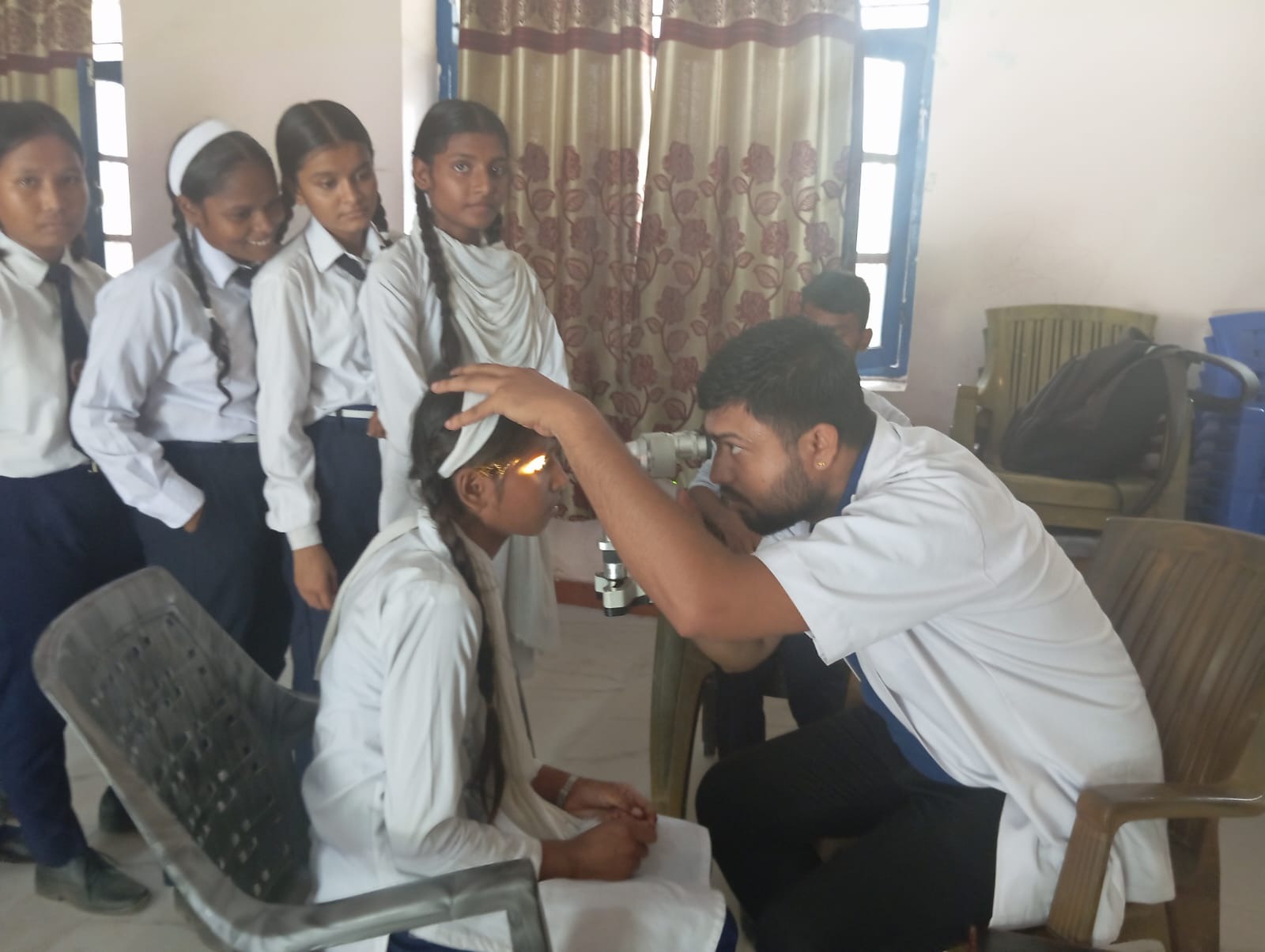 शिविरमा अस्पतालका नेत्र विशेषज्ञ प्रभात चौरसिया नेतृत्वको टोलीले विद्यार्थीहरुको आँखा जाँच गरीरहेको छ । शिविरमा आँखाको समस्या देखिएकाहरुलाई निशुल्क रुपमा औषधि समेत वितरण गरिएको घिमिरेले जानकारी दिनुभयो ।