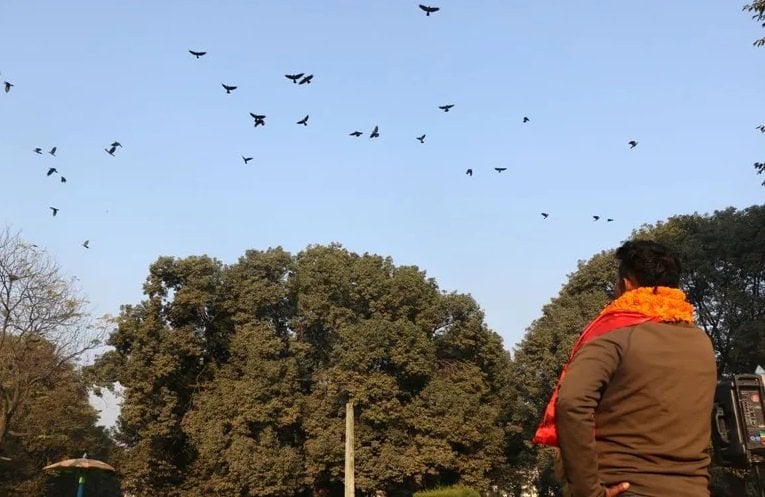 यमपञ्चकको पहिलो दिन काग तिहारका अवसरमा रत्नपार्कस्थित शान्ति वाटिकामा आज बिहान काग बोलाएर २० औँ काग सम्मेलन गरिएको हो । सम्मेलनमा कलाकार रमेश दुलालले कागको स्वर निकालेर कागलाई एकै ठाउँमा जम्मा पारेका थिए ।