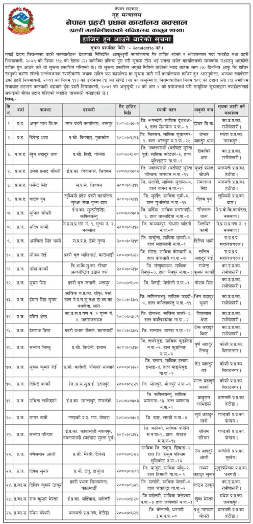 प्रहरी नियमावली २०७१ को नियम ११५ को (२) बमोजिम प्रक्रिया पूरा गरी सूचना टाँस भइसक्दा समेत उनीहरू कार्यालयको सम्पर्कमा नआएको सूचनामा उल्लेख छ ।