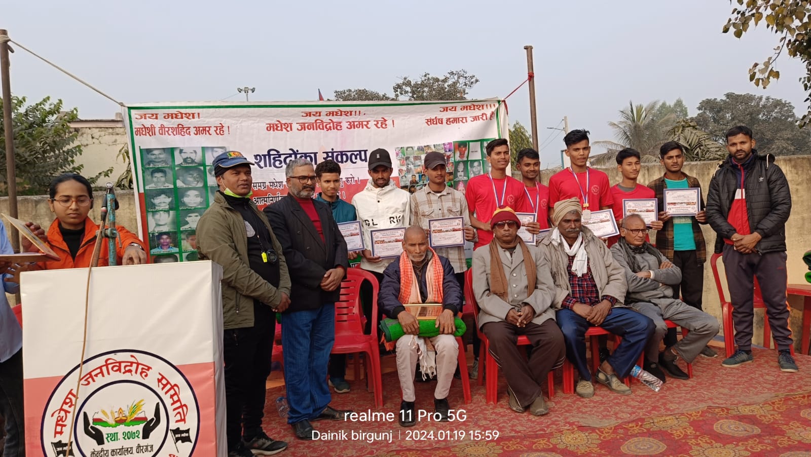 समितिका केन्द्रिय सदस्य अजय पटेलको अध्यक्षतामा भएको सो कार्यक्रममा प्रमुख अतिथि शहिद धर्मराज सिंहका बुवा प्रभु सिंह, विश्व हिन्दू महासंघ पर्साका अध्यक्ष नन्दन भारतद्वाज, समाजसेवी रामेश्वर पटेल, समितिका सदस्य गणेश साह कानु, ललन पटेल, यज्ञदेव शास्त्री, पर्सा खेलकुद संघका प्रशिक्षक बिशेश्वर पटेल लगायतकाले आ–आफ्ना मनतव्य व्यक्त गरेका थिए ।