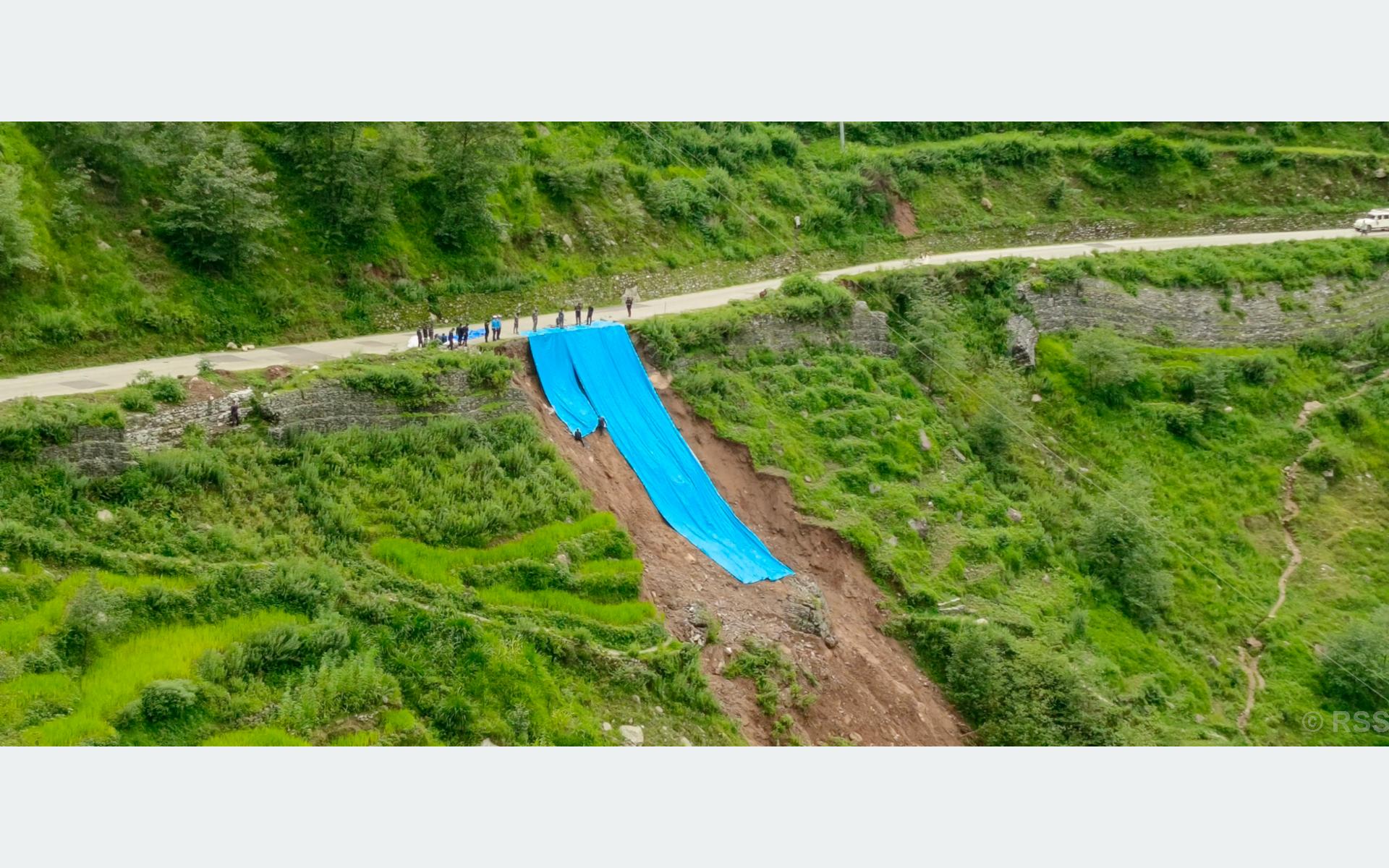 पहिरो नरोकिएपछि जिल्ला प्रशासन कार्यालयले सोमबार सुरक्षाकर्मी लगाएर पहिरो गएको ठाउँमा त्रिपाल बिछ्याएको हो । अविरल वर्षाका कारण भिरालो जमिनमा पहिरो नरोकिएपछि जिल्ला प्रशासन र नेपाल रेडक्रस सोसाइटीको सहयोगमा पहिरोमाथि त्रिपाल विछ्याइएको हो ।