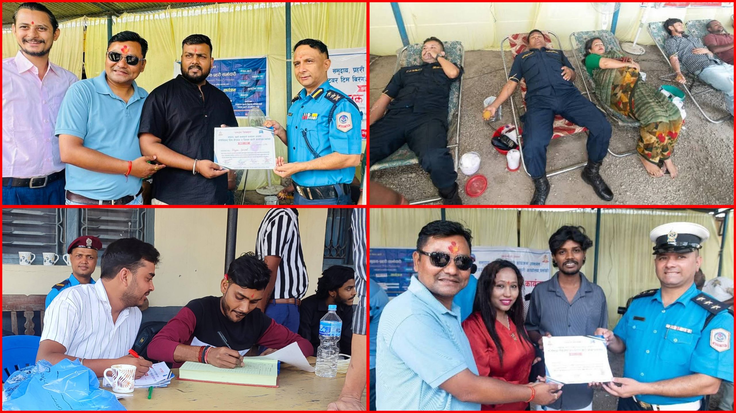 वीरगञ्ज। समुदाय–प्रहरी साझेदारी कार्यक्रम अन्तर्गत भोलेन्टियर समूह वीरगञ्ज र जिल्ला प्रहरी कार्यालय, पर्साको संयुक्त आयोजनामा आकस्मिक रक्तदान कार्यक्रम सम्पन्न भएको छ।