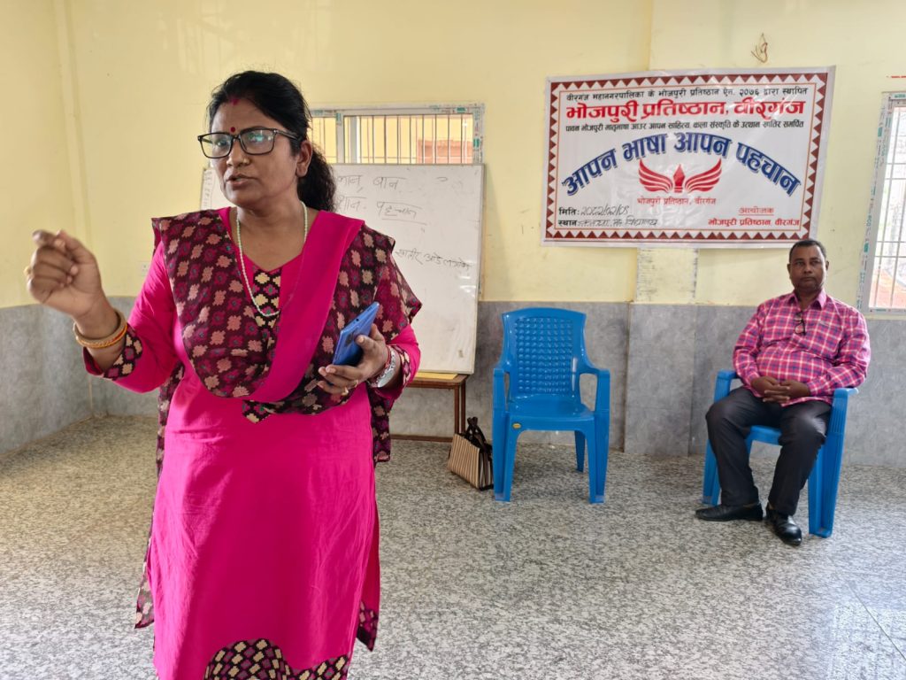 वीरगंज । वीरगंज महानगरपालिका कार्यालय अन्तर्गत रहेको भोजपुरी प्रतीष्ठान, वीरगंजले वीरगंजका सामुदायिक विद्यालयका विधार्थीहरुलाई लक्षित गर्दै “आपन भाषा आपन पहचान” नामक अभियान संचालन गरेको छ ।