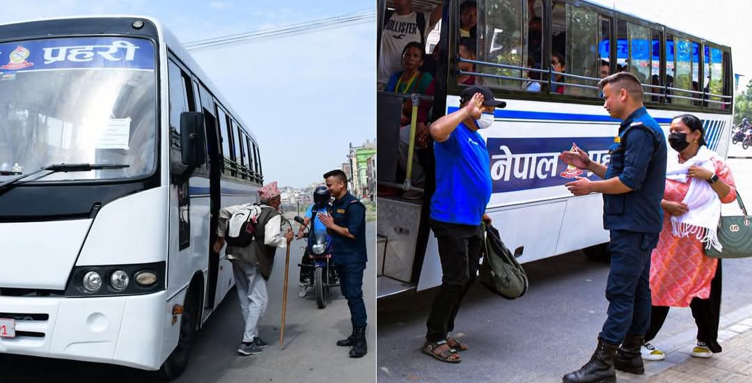 “नमस्कार! आउनुस्, बस्नुस्,” — बस चालक प्रहरीको नम्र स्वर।