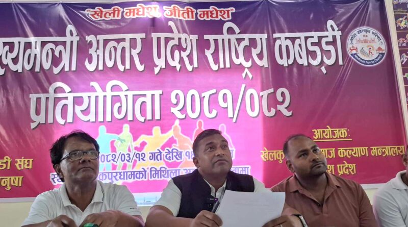 मधेश खेलकुद परिषद् जनकपुरधाम तथा मधेश प्रदेश कबड्डी संघको सहकार्यमा सम्पन्न हुने प्रतियोगितामा सातै प्रदेशका कबड्डी टोलीहरूको सहभागिता रहनेछ। परिषद्का सदस्य सचिव शिवजी प्रसाद कानुले प्रतियोगिता कबड्डी तथा समग्र खेलकुद विकासका लागि आयोजना गरिएको जानकारी दिए।