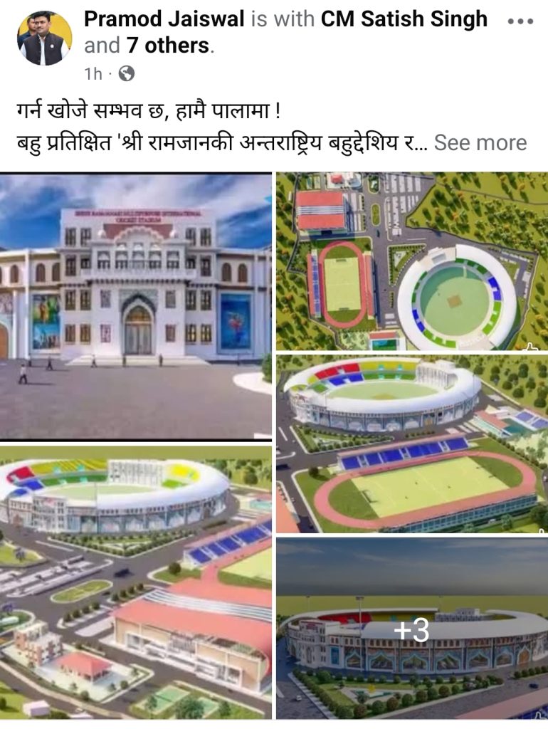 वीरगञ्ज । मधेश प्रदेशका खेलकुद तथा समाज कल्याण मन्त्री प्रमोद जयसवालले बहु प्रतिक्षित ‘श्री रामजानकी अन्तराष्ट्रिय बहुद्देशीय रंगशाला’ जनकपुरमा निर्माण हुने सुनिश्चित भएको बताएका छन्। उनले यो योजनालाई प्रदेश गौरवको योजनाका रूपमा अघि बढाउने घोषणा गर्दै, छिट्टै टेण्डर प्रक्रिया थालिने जानकारी दिएका छन्।