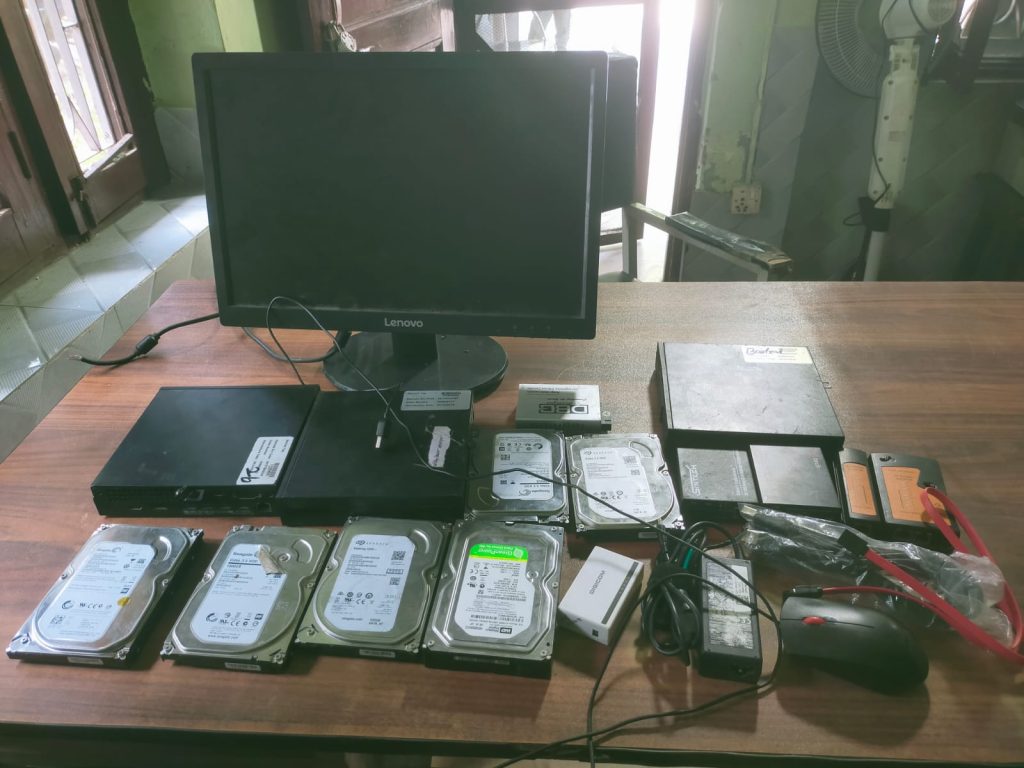 बरामद सामानमा ९ थान हार्ड डिस्क, १ थान केबल टेस्टर, ३ थान क्यामेरा, ल्यापटपको केबल १ थान, कम्प्युटर केबल १ थान, ९ थान डिजिकम उपकरण, ९ थान डेस्कटप मोनिटर, १ थान CPU, CPU पावर केबल १ थान, १ थान माउससहितका अन्य सामग्री रहेका छन्।