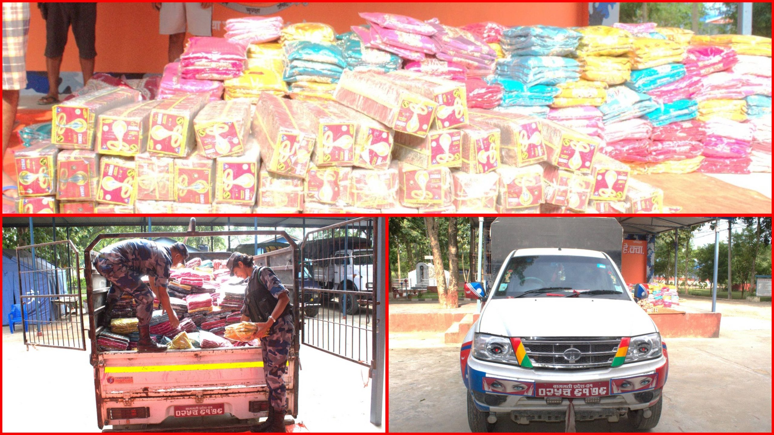 रेडिमेड कपडा, पटका र १ वटा पिकअप (योद्धा) गाडीसहित दुई जना व्यक्तीलाई नियन्त्रणमा लिइएको छ। बरामद गरिएको सामान तथा व्यक्तिहरुलाई भन्सार कार्यालय बुझाइने र बरामद पटाका भने पेरिमिटरभित्र खाल्डो खनेर नष्ट गरिएको सशस्त्र प्रहरी उपरीक्षक के.सी.ले जानकारी दिए ।