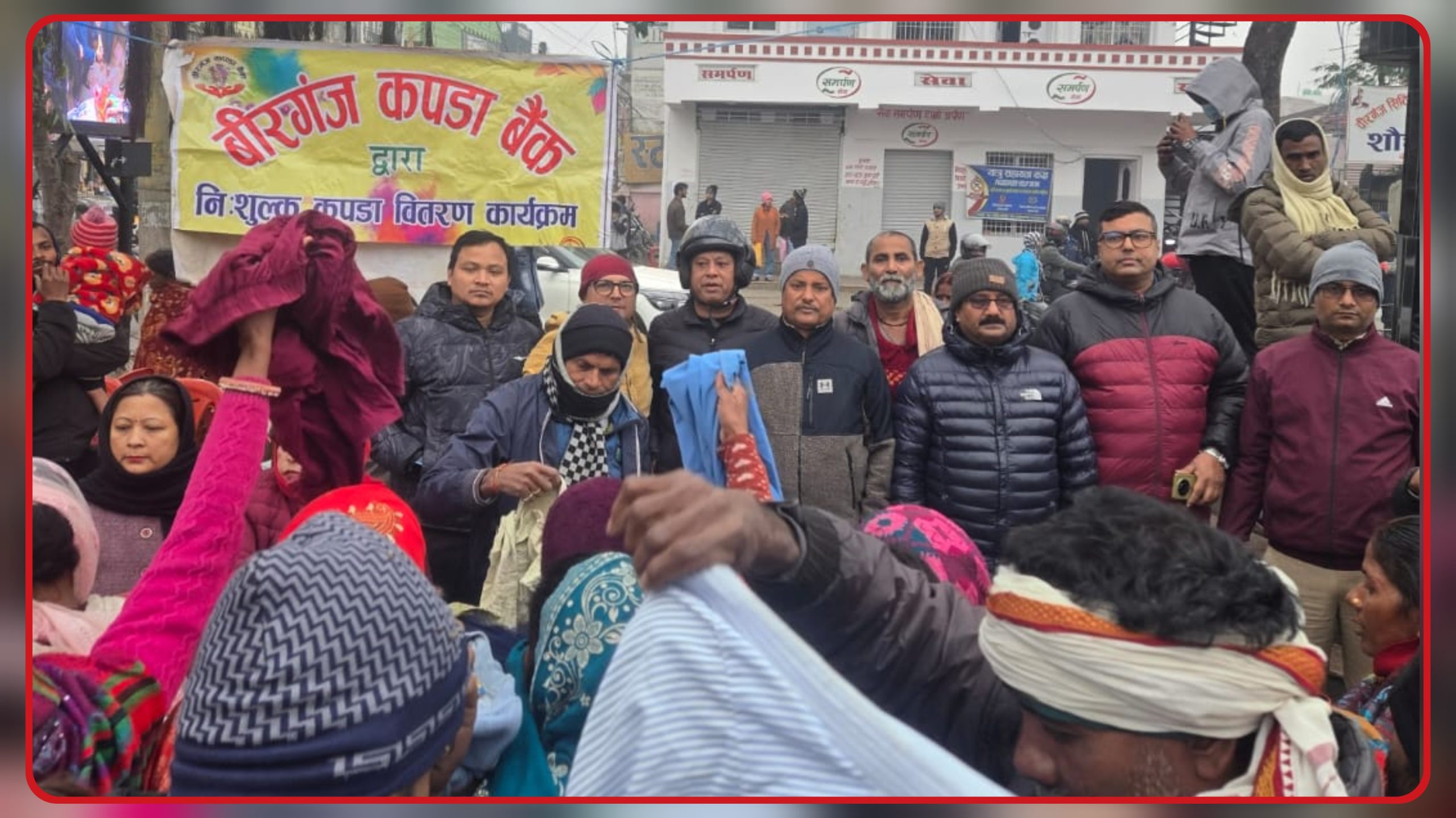 वीरगन्ज । बढ्दो चिसोलाई मध्यनजर गर्दै वीरगन्ज कपडा बैंकले शुक्रबार वीरगन्जको घण्टाघरमा नि:शुल्क कपडा वितरण कार्यक्रम सम्पन्न गरेको छ।