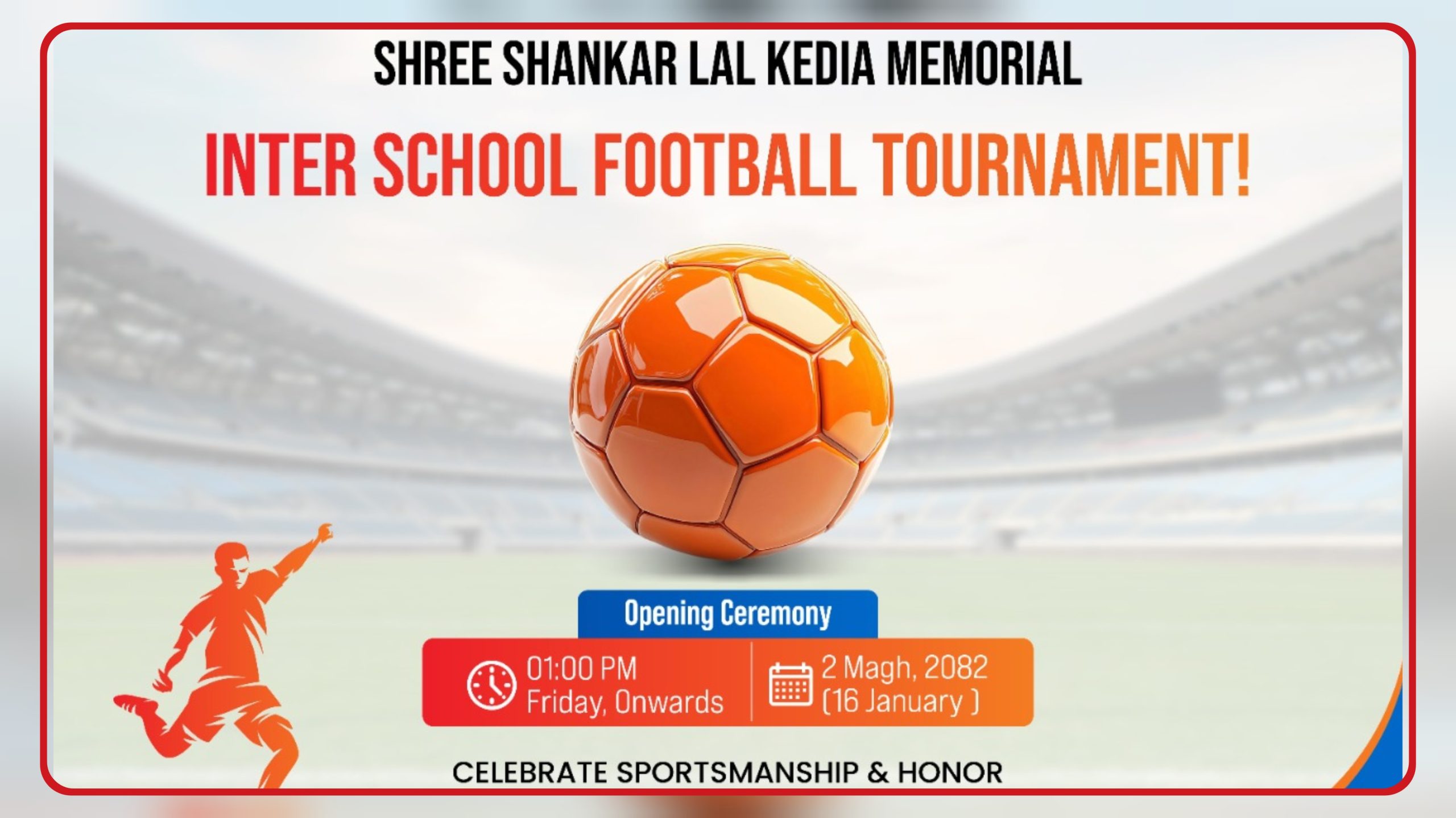वीरगञ्ज । वीरगञ्जस्थित डी.ए.भी. आर.बी. केडिया स्कूलले स्वर्गीय श्री शंकरलाल केडियाको ९०औँ जन्मजयन्तीको अवसरमा ‘चौथो संस्करण श्री शंकरलाल केडिया स्मृति अन्तरविद्यालय फुटबल प्रतियोगिता’ आयोजना गर्ने भएको छ।